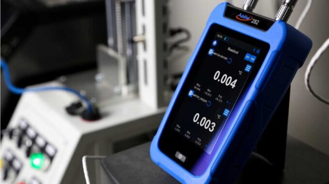 Additel’s 282 reference grade readout provides a temperature measurement accuracy as good as 0.005°C (readout only), with a typical system uncertain of approximately 0.013°C @ 0°C when coupled with a capable PRT. This new temperature meter is loaded with features such as dual channels, RTD & thermocouple measurement capabilities, cold junction compensation for more accurate TC measurements, a large smartphone like display, Bluetooth and USB communications, a built-in easy to access sensor library, datalogging capabilities, an IP67 rating and a rechargeable lithium battery.
