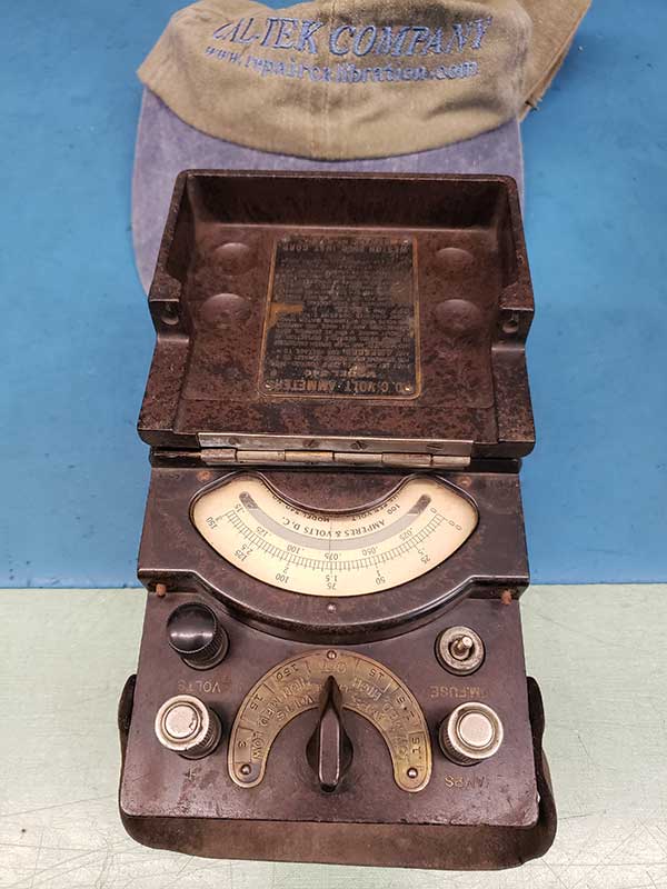 In other instances, determining the age of a piece of equipment follows the quality control process of the manufacturer. Such is the case with the Weston Model One pictured on the following page. In the earliest days of the twentieth century, the Weston Electrical Instrument Corporation often provided date-of-manufacture information on the back of their meter scales. However, date stamps strategically placed at various locations inside a product will also reveal its age. These dates correspond to the day that the instrument passed its quality control testing after final assembly. This particular instrument passed its quality control inspection on May 2, 1904.