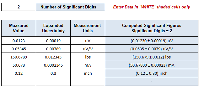 The second new feature deals with computing number of significant digits when reporting measured values with expanded uncertainties and associated units. Guidance is provided for determining number of significant digits as well as when significant digit rounding should occur when adding/subtracting and multiplying/dividing numbers. Significant digits rounding is available for 1, 2, and 3 digits (see Fig. 2).