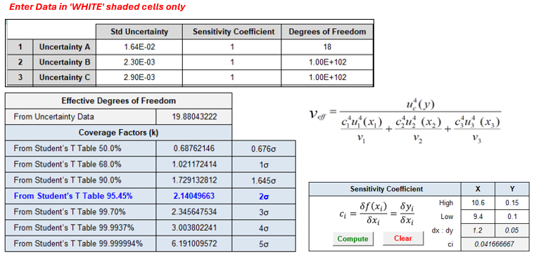 Figure 3. Effective Degrees of Freedom Coverage Factor & Sensitivity Coefficient