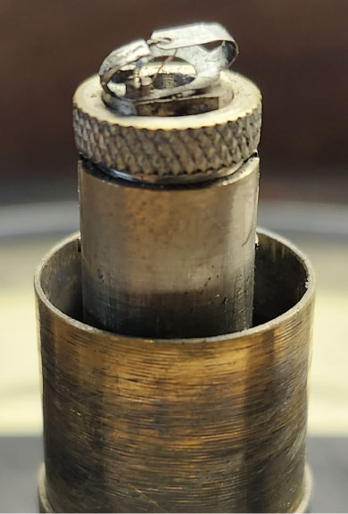 As I began researching other articles that I have had published in this magazine, I found numerous places online, including statements on the websites of some panel meter manufacturers, that taut-band meter technology gained wide acceptance only after advances in materials research made them strong enough to be a viable alternative solution to pivot-and-jewel based meters in the 1950s. Prior to this, spring-loaded jewel assemblies had been one solution for creating what were called “ruggedized” meters. Imagine my astonishment when I removed the outer shroud of this megohmmeter’s front-panel turret. The picture above clearly shows the leaf spring assembly of what the English manufacturer used to attach what they called a ligament wire to the coil assembly of the movement. Over here, we called it a taut band.