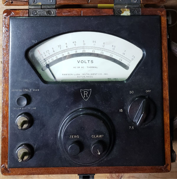 Another indicator of the age of this specimen is the font used on its scale. This font type was also used in the early days by the Boston Red Sox, a stylized version of which still adorns their team logo. The serial number is an important reference point as I have not found any date stamps or other notes created during the manufacturing process on any Rawson Electrical Instruments Company products, ever. So, without any other available information, we can make an informed guess as to its age using the following logic: If there are approximately two hundred and sixty workdays in a year and the company was able to produce roughly ten units per workday, this unit’s serial number could have been achieved within four years of production. As the supply chain from Paul Instruments appears to have been fully developed prior to 1920, this could possibly mean that this specific unit may be about one hundred years old, give or take a hand grenade. As of the date of this publication, that’s the best I can do.